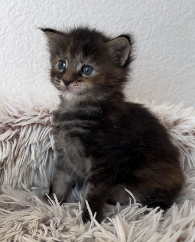 Our Maine Coon kittens grow into impressive cats with fluffy coats and loving temperaments.