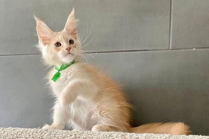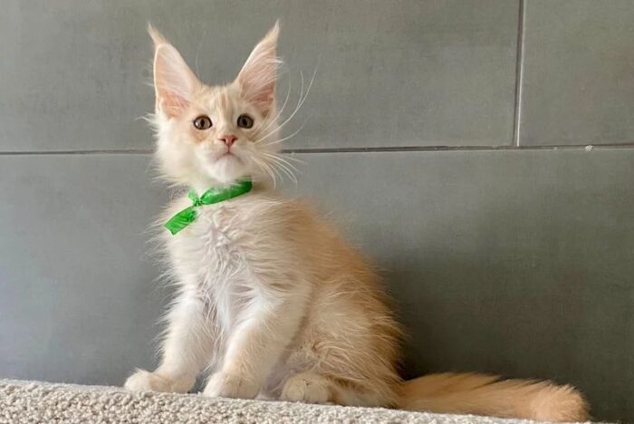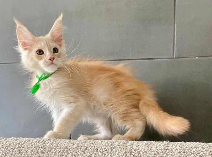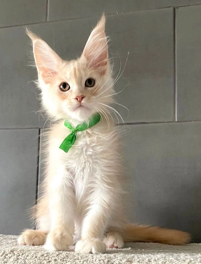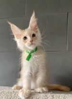 Say hello to Brussels, a stunning cream-colored male Maine Coon kitten with a personality as soft and warm as his luxurious fur. With his tufted ears, expressive eyes, and fluffy tail, Brussels is the epitome of feline elegance and charm. Raised with love and care, he’s playful, intelligent, and ready to become your lifelong companion. Brussel Male Maine Coon Kitten