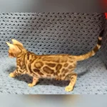 Meet Jack Purebred Male Bengal Kitten, a striking young feline that embodies the wild beauty and elegance of the Bengal breed. His luxurious golden-brown coat, covered in dark, well-defined rosettes, glimmers under the light with a rich, glittered sheen. Jack’s deep green eyes are full of curiosity and intelligence — a perfect reflection of his spirited personality.