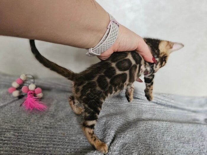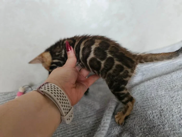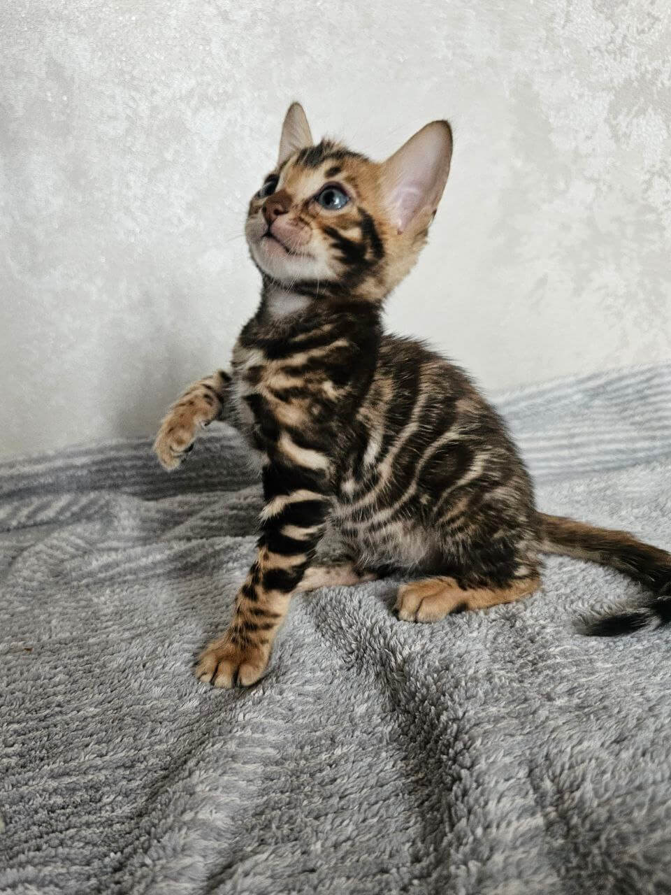 Introducing Teddy, a breathtaking purebred Bengal kitten with a golden-brown coat, bold rosettes, and a playful, intelligent personality. Teddy is a male Bengal raised in a loving, social environment, making him confident, curious, and ready to bond with his forever family.